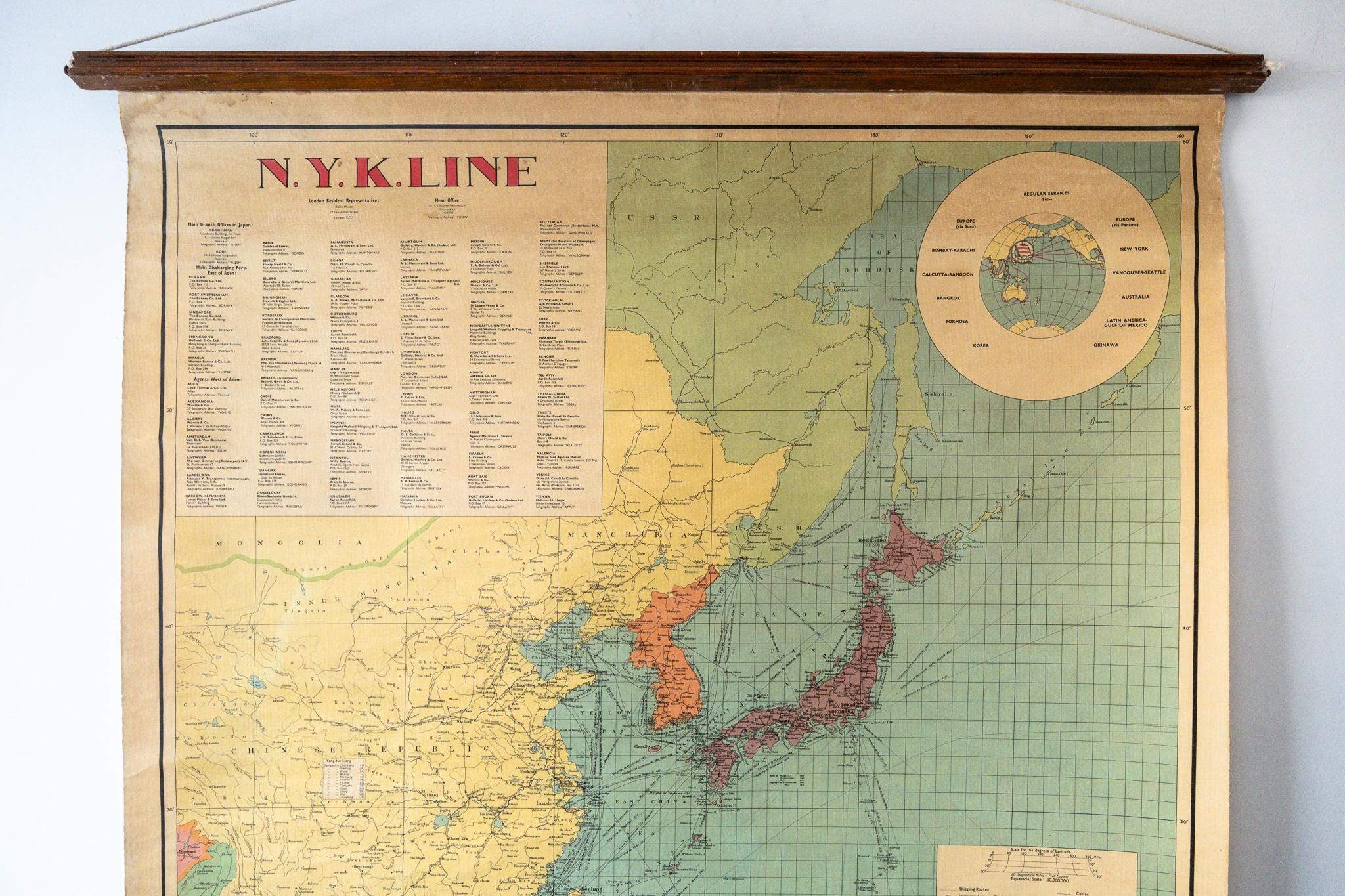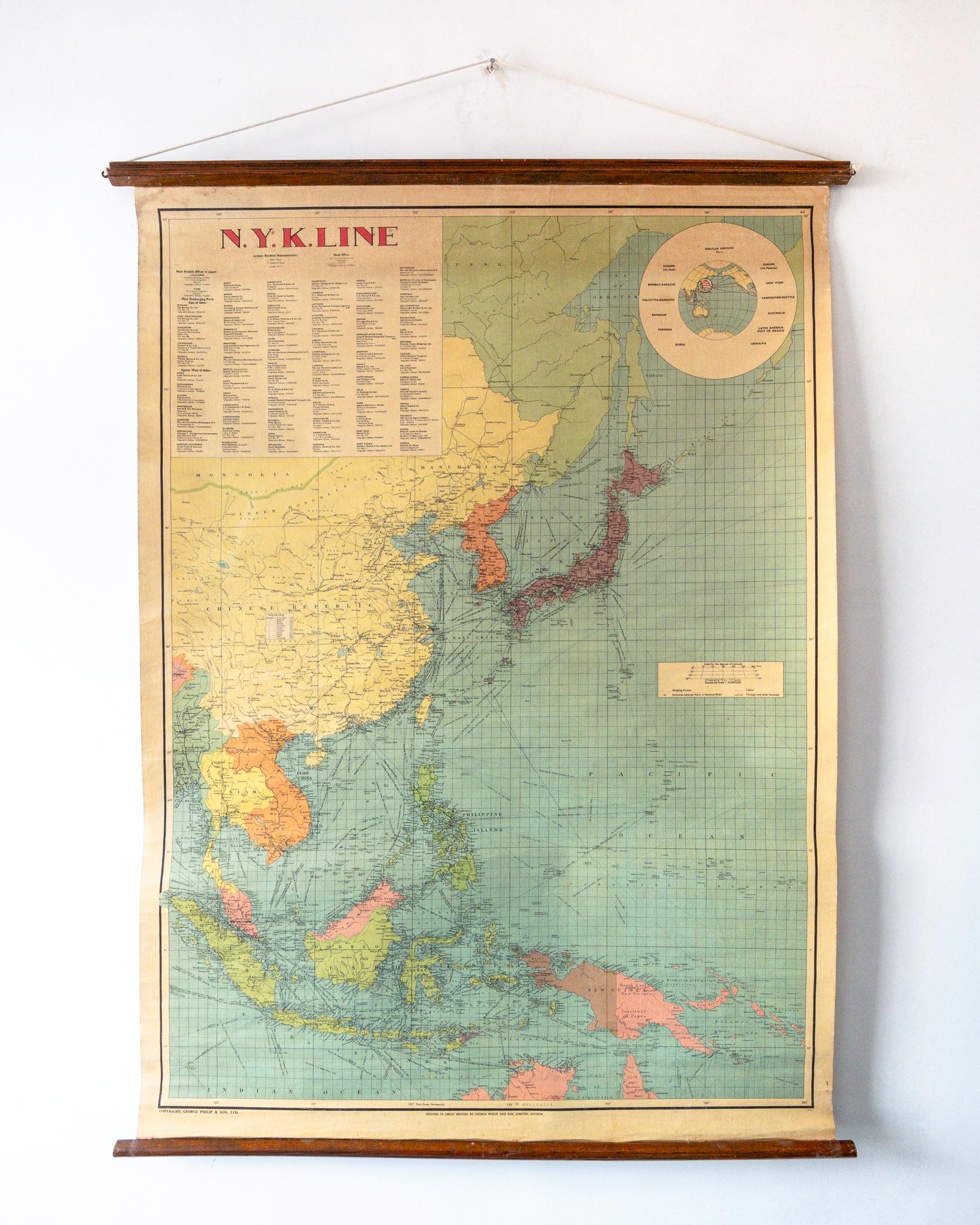 Routes of the NYK (Nippon Yuen Kabushiki) Shipping Company, Asia by George Philip & Son.