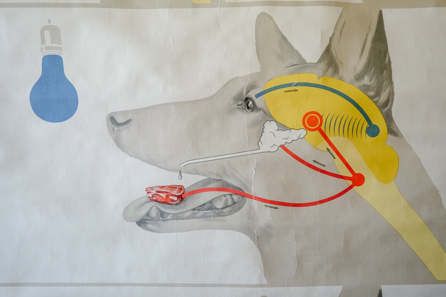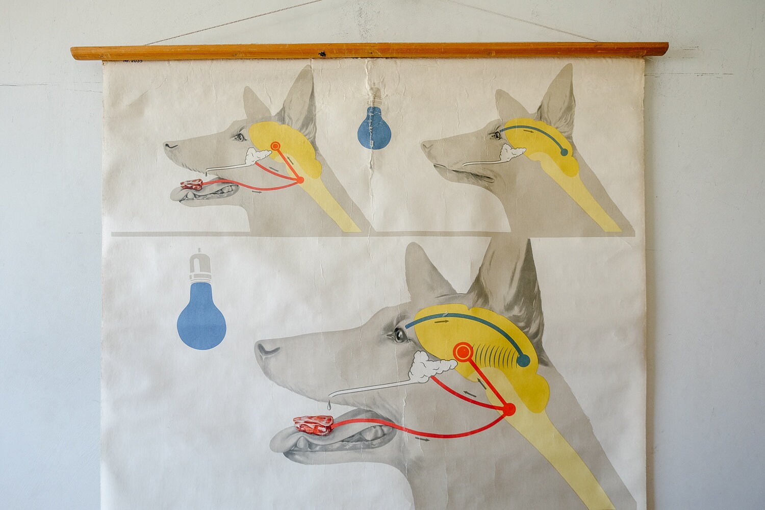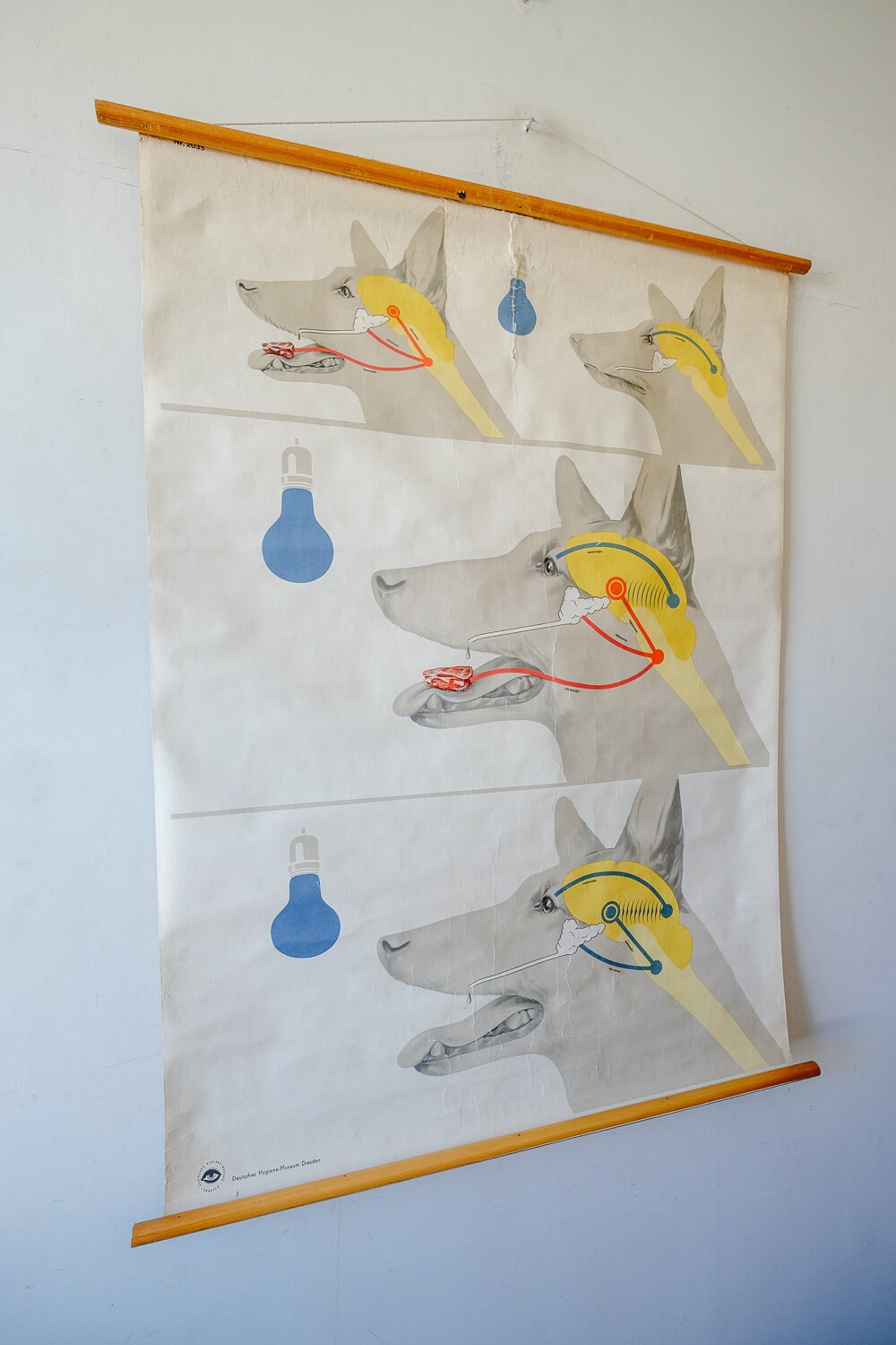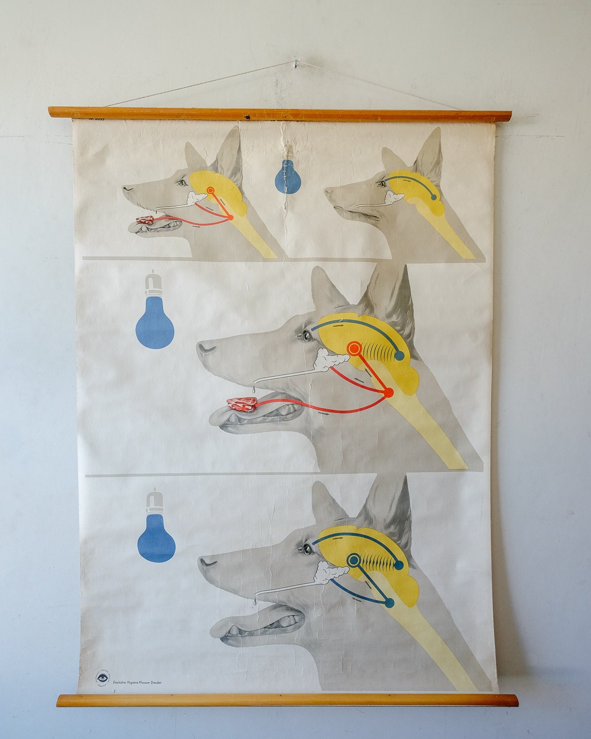 Gorgeous Wall Chart depicting the salival response of dogs to a stimuli, part of the wider behavioural and associative principles studied and developed by Ivan Pavlov.